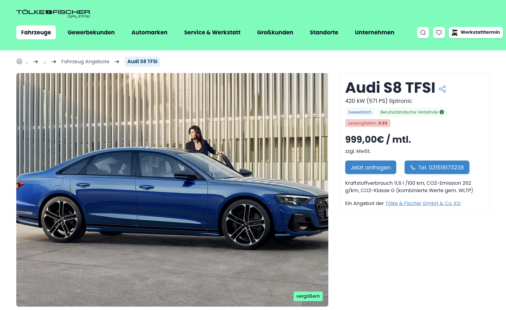 Audi S8 Leasing für 999 Euro im Monat netto [Berufsständische Verbände]