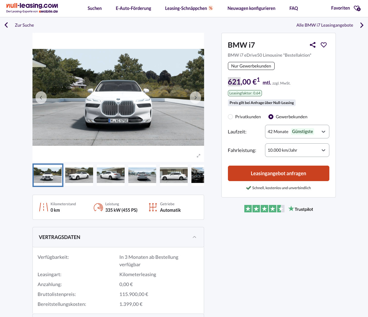 BMW i7 eDrive50 Leasing für Geschäftskunden