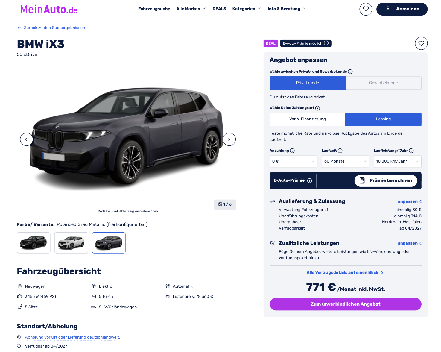 Im Marktvergleich zeigt sich der Preisvorteil deutlich. Während der Platzhirsch rund 1.009 Euro brutto monatlich für einen ähnlich ausgestatteten BMW iX3 verlangt, liegt dieses Angebot mit 771 Euro brutto pro Monat spürbar darunter. Dadurch entsteht ein Leasingdeal, der ein modernes Elektro-SUV der Premiumklasse zu deutlich attraktiveren Konditionen zugänglich macht.