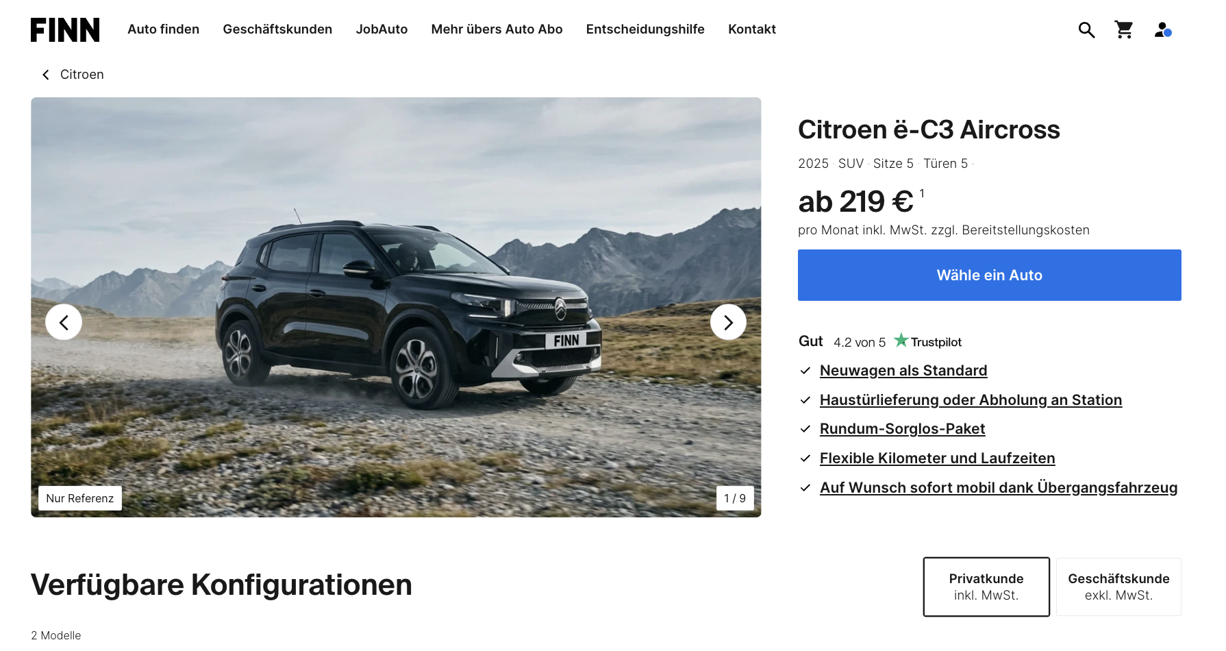 Citroën ë-C3 Aircross Auto-Abo für 219 Euro im Monat brutto [All-inclusive, Coupon]