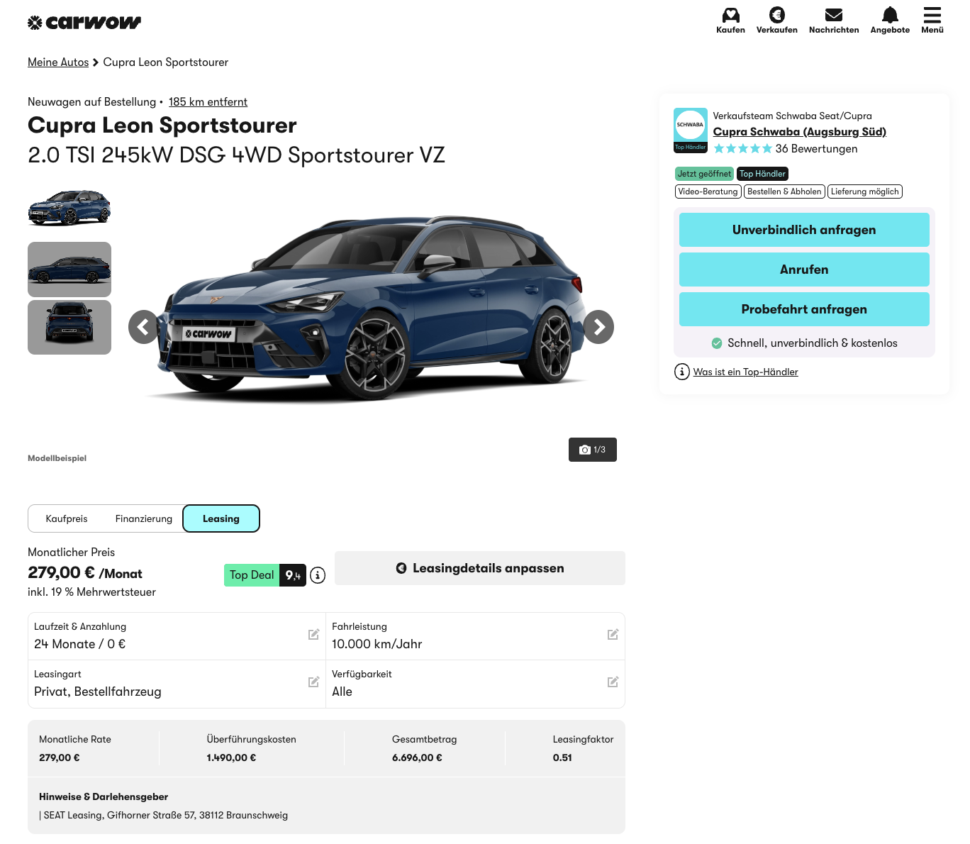 🔥 Cupra Leon ST VZ Leasing für 279 Euro im Monat brutto [frei konfigurierbar]
