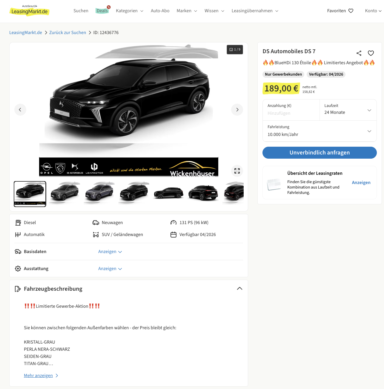 Kalkuliert ist das Angebot mit 24 Monaten Laufzeit und 10.000 Kilometern pro Jahr, Anpassungen sind möglich. Der Vergleich zeigt den Vorteil klar, denn der Platzhirsch liegt beim DS 7 aktuell bei 283 Euro netto pro Monat, damit bleibt hier im Budget spürbar mehr Luft, gerade wenn mehrere Fahrzeuge im Bestand laufen.