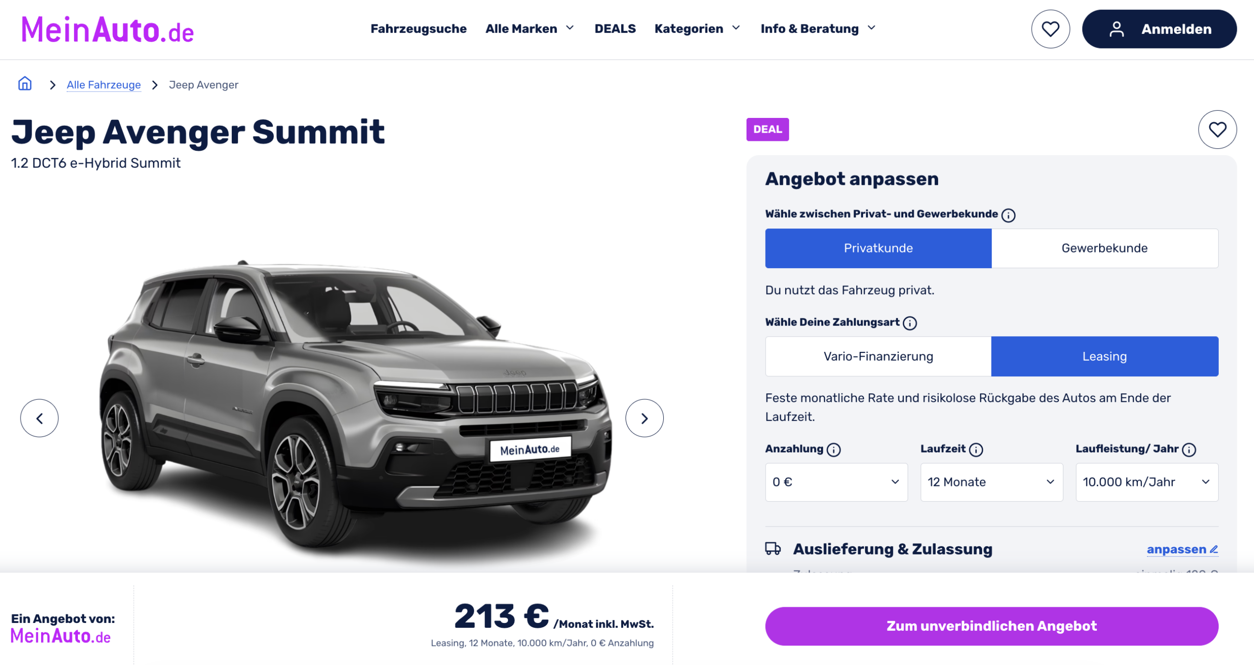 đź’Ą Jeep Avenger Leasing fĂĽr 213 Euro im Monat brutto [Vorlauffahrzeug]