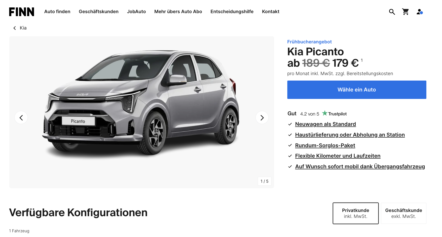 Kia Picanto Auto-Abo für 179 Euro brutto pro Monat [All-inclusive, Coupon]