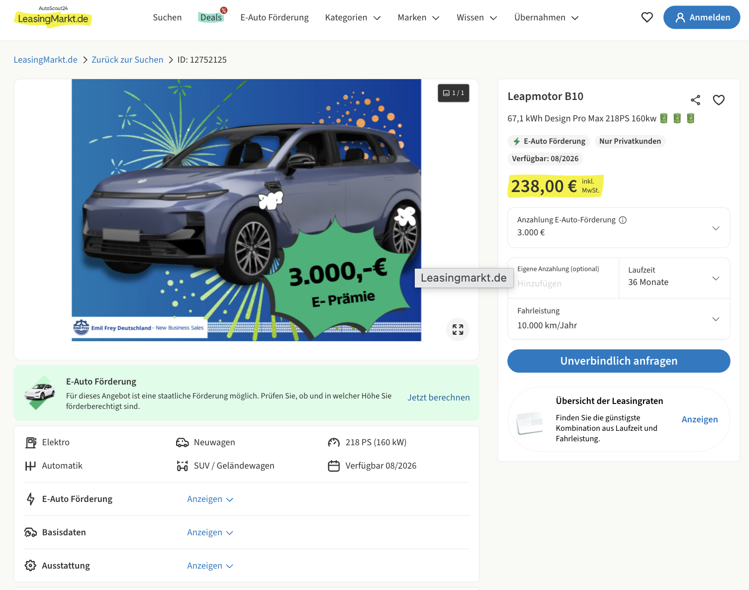 Leapmotor B10 Leasing für 238 [321] Euro im Monat brutto [Umwelt]