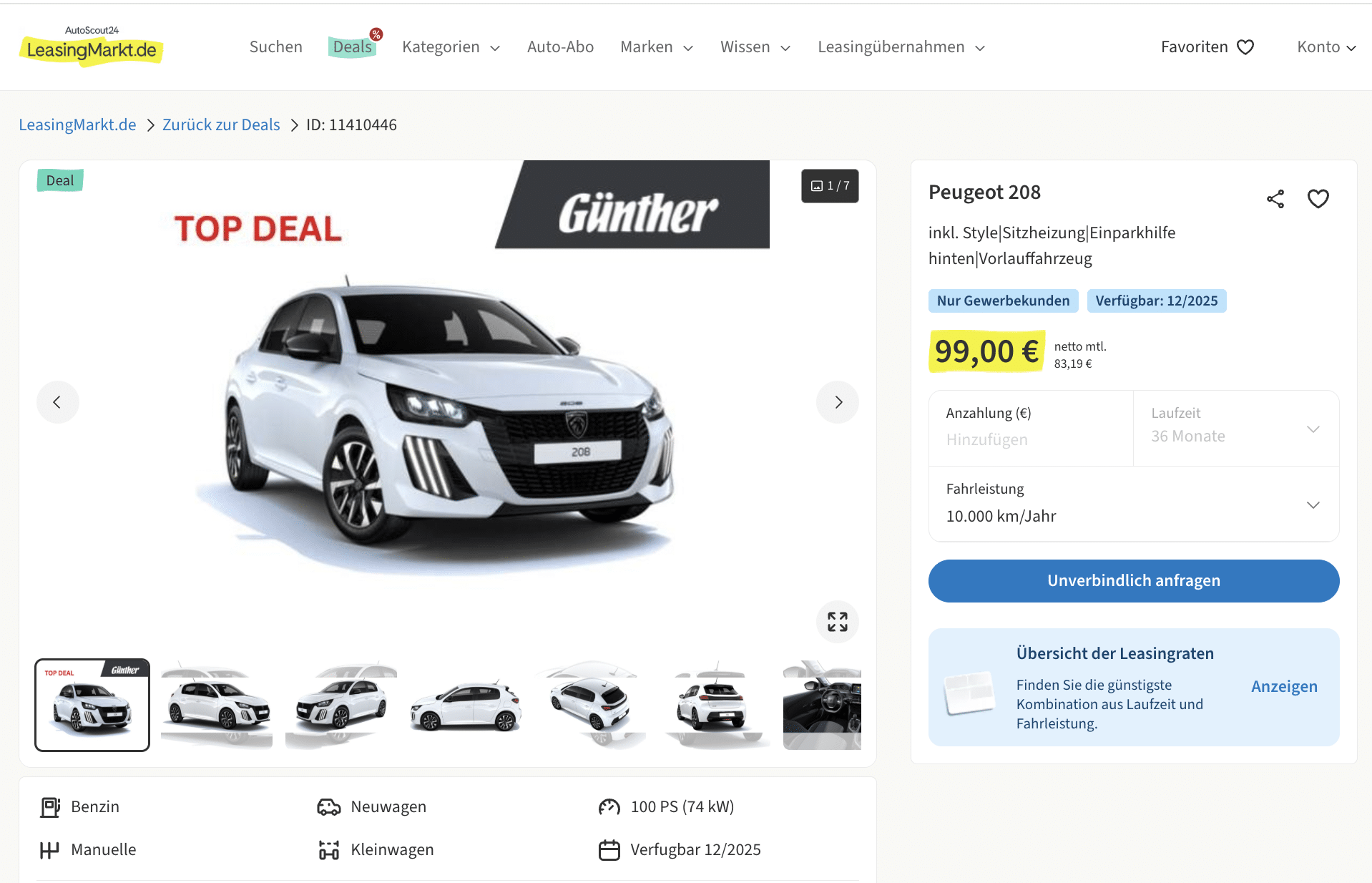 Peugeot 208 Leasing für 83 Euro netto pro Monat [Vorlauffahrzeug]