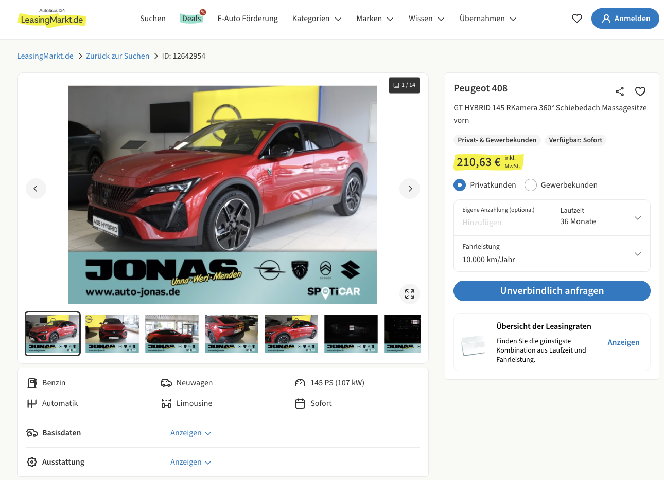 Besonders auffällig wird der Deal im Vergleich zum Markt, denn ähnlich ausgestattete Modelle liegen teils deutlich höher, teilweise im Bereich von über 600 Euro monatlich. Genau hier setzt dieses Angebot an und positioniert den 408 als echte Alternative für alle, die Design, Effizienz und Preis in Einklang bringen wollen.