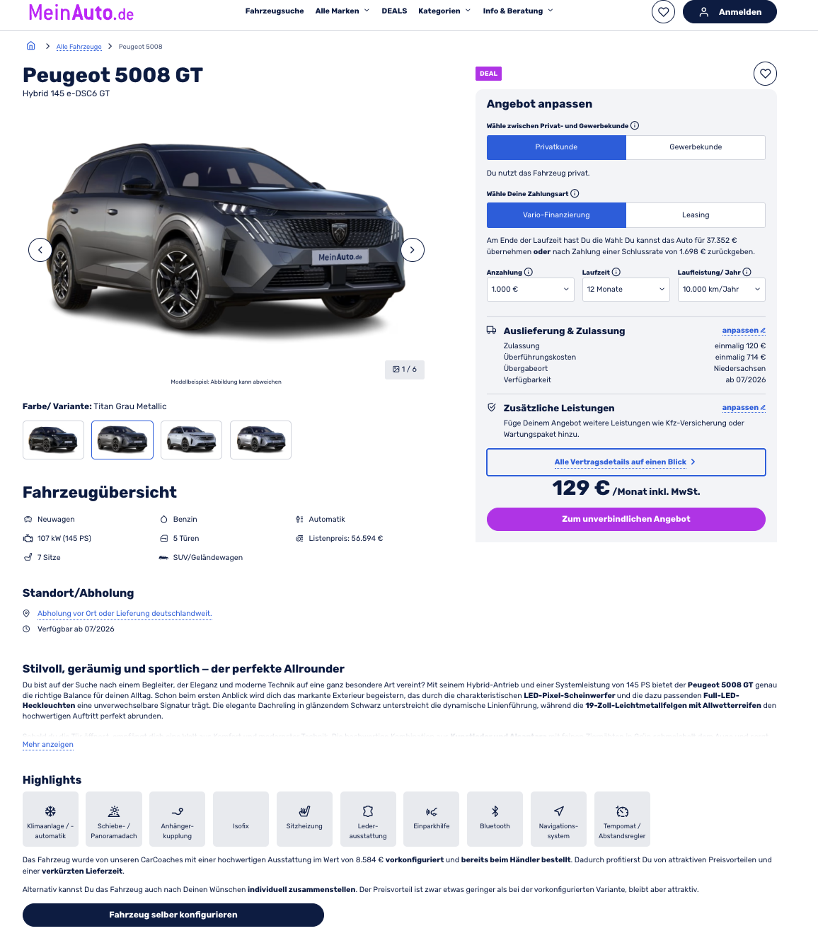 🚀 Peugeot 5008 Vario-Leasing für 129 [212] Euro im Monat brutto [frei konfigurierbar]