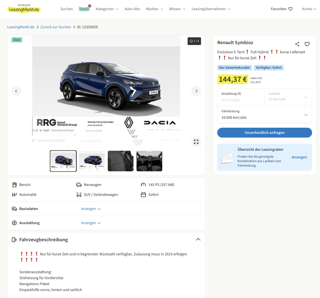Renault Symbioz Leasing für 121 Euro im Monat netto [sofort verfügbar]