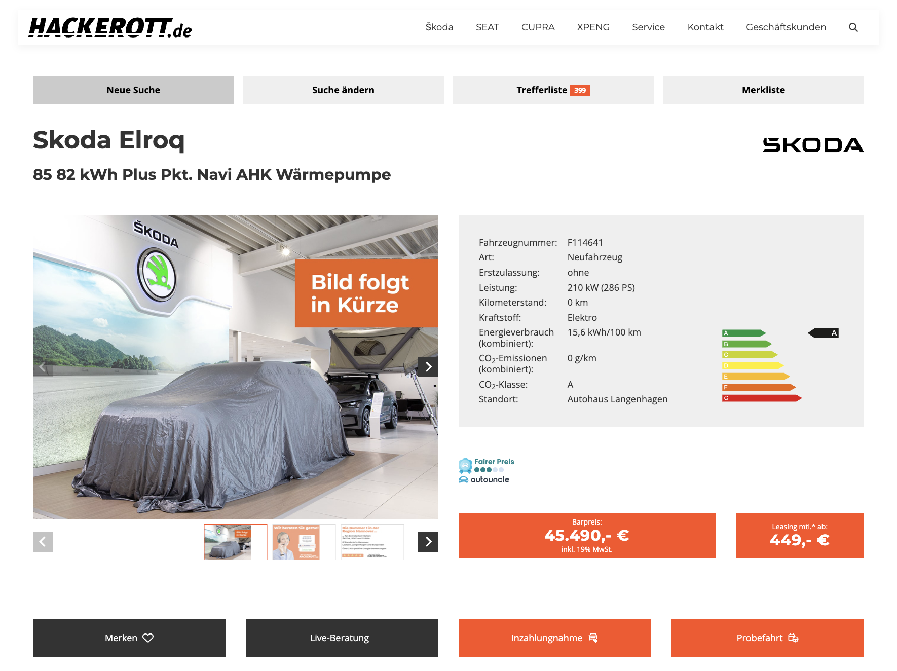 Škoda Elroq 85 Kaufdeal für 45.490 Euro brutto