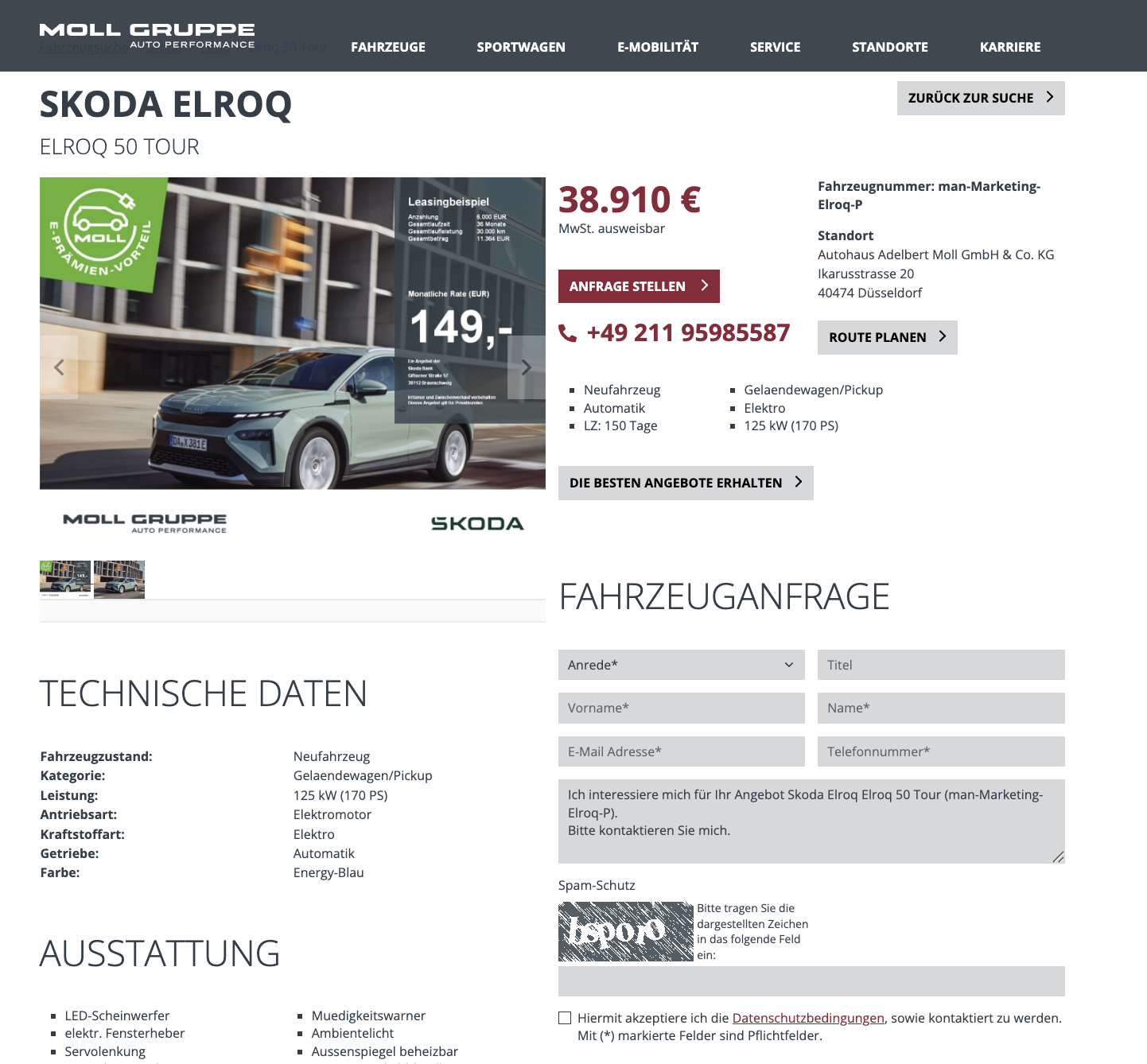 Die neue Umweltprämie lässt aktuell die Preise für E-Fahrzeuge verrücktspielen. Beim Autohaus Moll gibt es den Škoda Elroq 50 Tour für 149 Euro im Monat brutto. Grundlage dafür ist eine Anzahlung von 6.000 Euro, die im Rahmen der Umweltprämie später vom Staat erstattet werden kann. Wer sich zur Prämie und zur Staffelung noch genauer einlesen will, findet die Details in unserem Ratgeber.