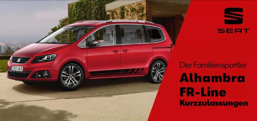 20. April 2019 Kaufdeals! Seat Alhambra FR-Line als Kurzzulassung [Finanzierung] Ein Familienvan muss nicht gleich langweilig sein. Bei Bierschneider gibt es den Seat Alhambra in der Sportversion FR-Line zum Kaufen oder Finanzieren. Der Seat Alhambra... TSI Verbrauch: innerorts: 8,2 l/100 km • außerorts: 6,1 l/100 km • kombiniert: 6,9 l/100 km* • Emissionen: kombiniert: 197 g/km CO2*