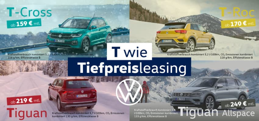 25. Januar 2020 VW Tiguan 2.0 TSI OPF 169kW DSG 4Motion Highline Leasing für 259 Euro im Monat netto [Bestellfahrzeug] Schicker SUV als Bestellfahrzeug gesichtet: Bei null-leasing könnt ihr den VW Tiguan 2.0 TSI OPF 169kW DSG 4Motion Highline im Geschäftsleasing für 259 Euro im... Verbrauch: innerorts: 9,0 l/100 km • außerorts: 6,9 l/100 km • kombiniert: 7,7 l/100 km* • Emissionen: kombiniert: 175 g/km CO2* Hitze141°