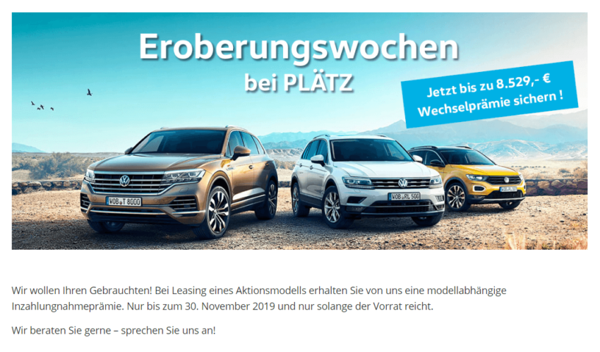Jetzt bekommen auch Privatkunden ein tolles Leasingangebot bei Plätz für den VW Golf VII. Wenn man über die Anzahlung in Höhe von 2.850,-- Euro hinwegsieht,...