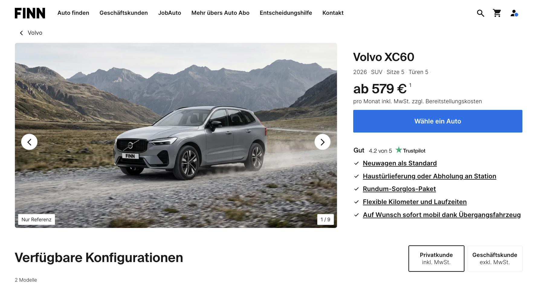Volvo XC60 Auto-Abo für 579 Euro im Monat brutto [All-inclusive, Coupon]