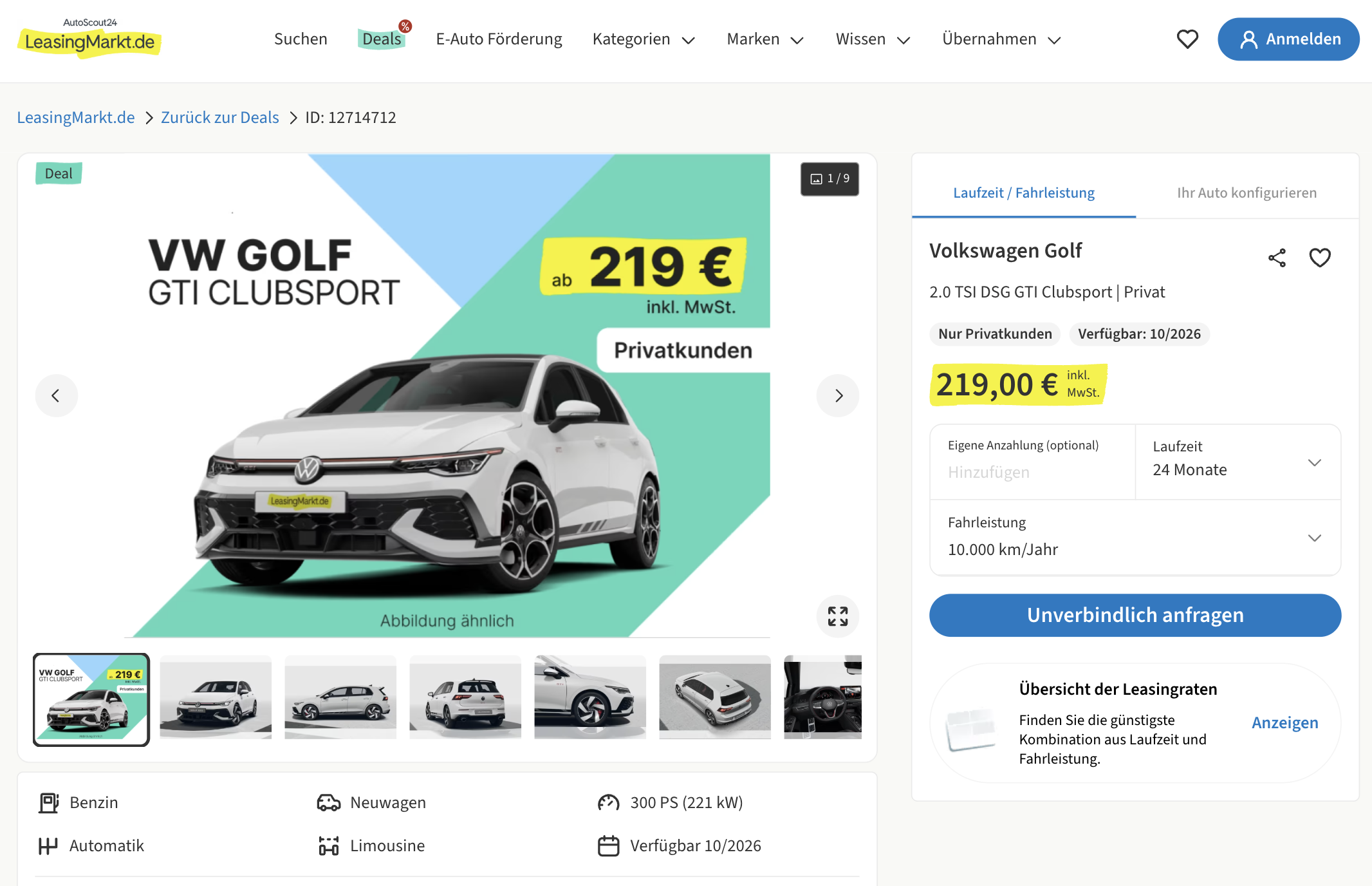 Kalkuliert wurde das Angebot mit 24 Monaten Laufzeit und 10.000 Kilometern pro Jahr, Anpassungen sind in der Regel möglich. Besonders stark wird der Deal im Marktvergleich, denn während andere Anbieter für einen vergleichbaren VW Golf GTI Clubsport teils deutlich über 670 Euro brutto pro Monat verlangen, bleibt dieses Angebot mit 219 Euro brutto auffallend günstig. Wer einen echten GTI mit Extraschärfe sucht, bekommt hier einen Deal, der nicht nur emotional, sondern auch rechnerisch richtig stark wirkt.