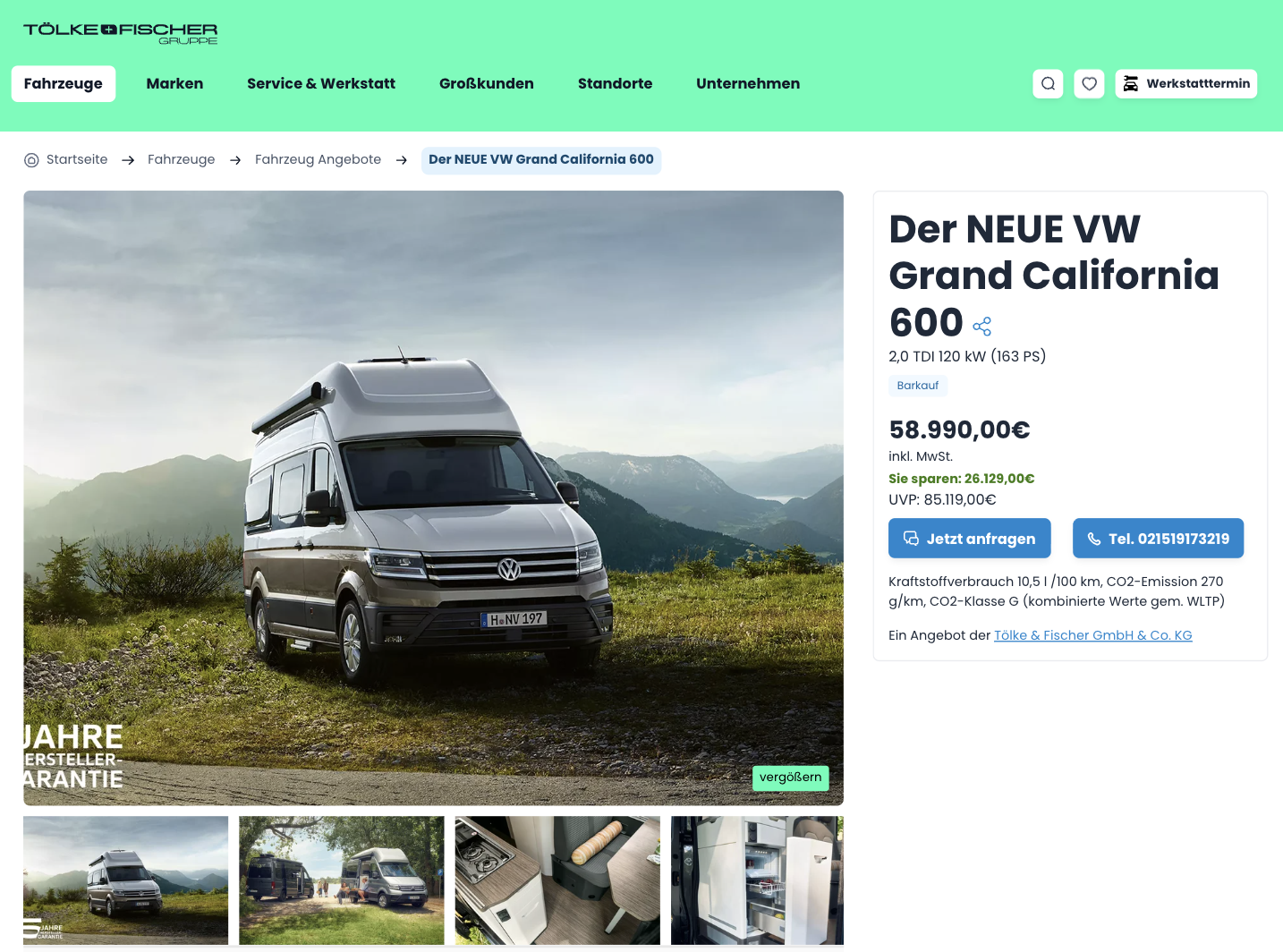 Der Volkswagen Grand California ist ein rollendes Zuhause für den Alltag und großere Touren. Bei Tölke+Fischer gibt es den VW Grand California 600 2,0 TDI SCR 130 kW DSG für 58.990 Euro brutto als Kaufdeal. Die UVP liegt bei 85.119 Euro, daraus ergibt sich eine Ersparnis von 26.129 Euro, also rund 30 Prozent Rabatt, und das ist in dieser Fahrzeugklasse alles andere als selbstverständlich. Praktisch für die Kalkulation, Auslieferungskosten sowie KFZ Briefgebühren sind im Preis enthalten. Wichtig ist die Verfügbarkeit, denn das Angebot gilt nur solange der Vorrat reicht, vorgesehen ist der Aktionszeitraum vom 17.01.2026 bis 28.02.2026, zusätzlich wird ein Enddatum bis 14.03.2026 genannt, je nachdem, was zuerst eintritt, Stückzahl oder Frist.