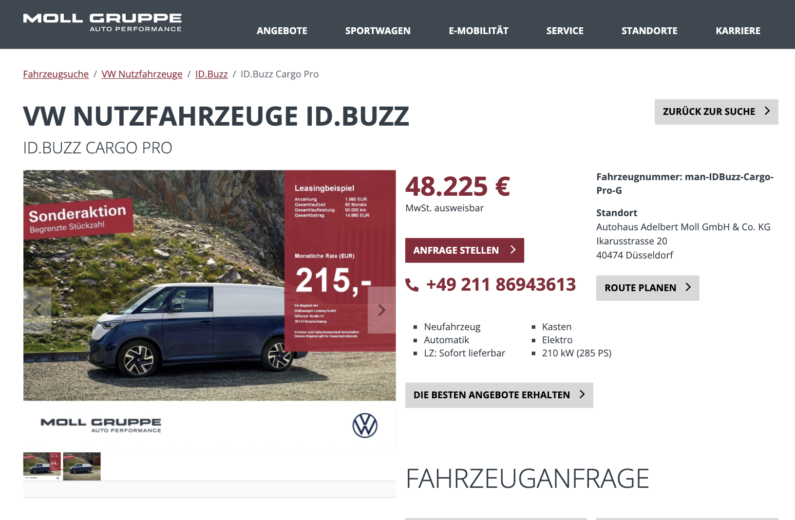 Der klassische Bulli geht vollelektrisch in den Arbeitsalltag und bleibt dabei überraschend effizient. VW ID.Buzz Cargo Pro 79 kWh 210 kW beim Autohaus Moll für 215 Euro netto im Monat setzt im Geschäftsleasing ein klares Ausrufezeichen und positioniert sich deutlich unter dem aktuellen Marktniveau. Die Kalkulation basiert auf einer Sonderzahlung von 1.980 Euro netto, das Fahrzeug ist sofort verfügbar in Candy-Weiß.
