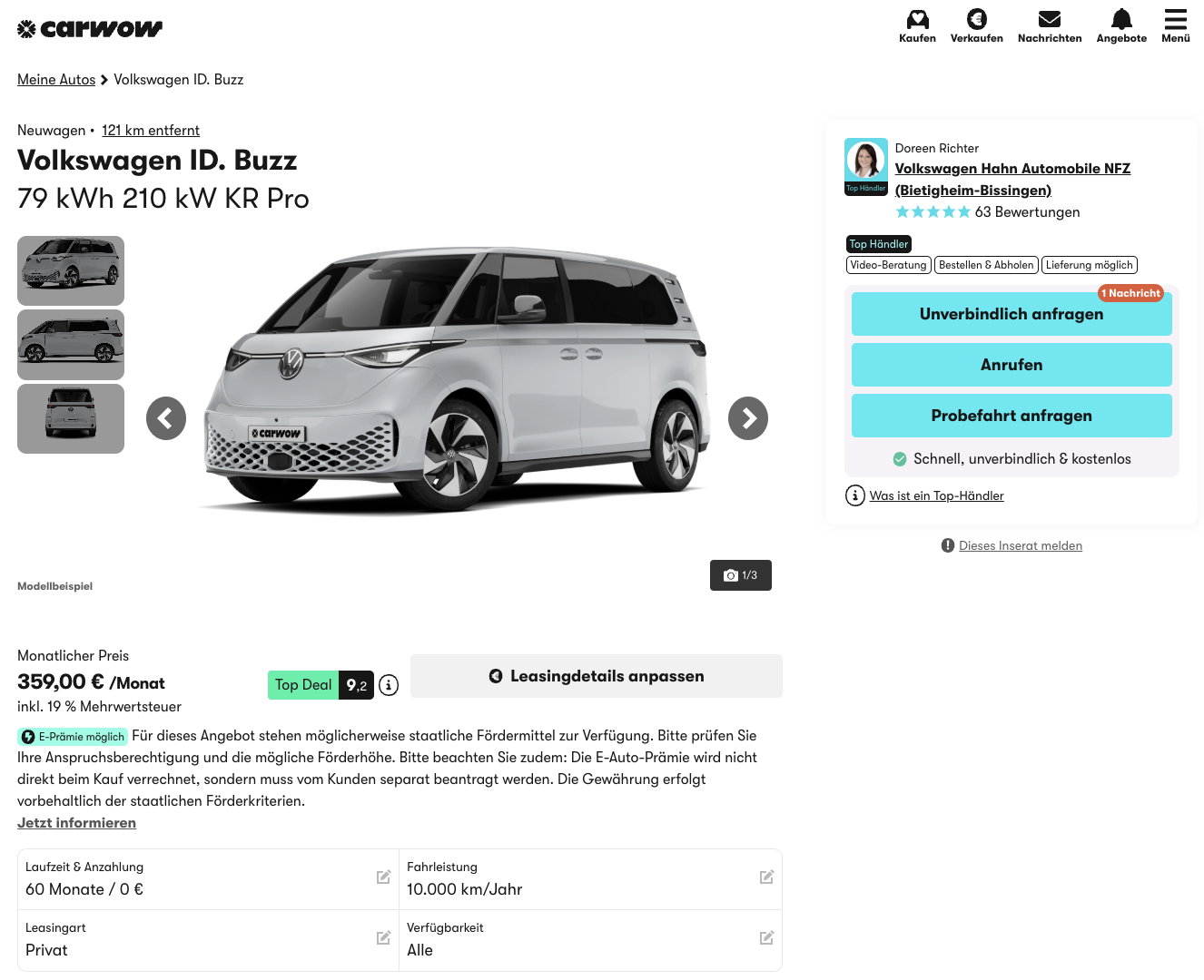 VW ID.Buzz Leasing für 359 Euro im Monat brutto [frei konfigurierbar]