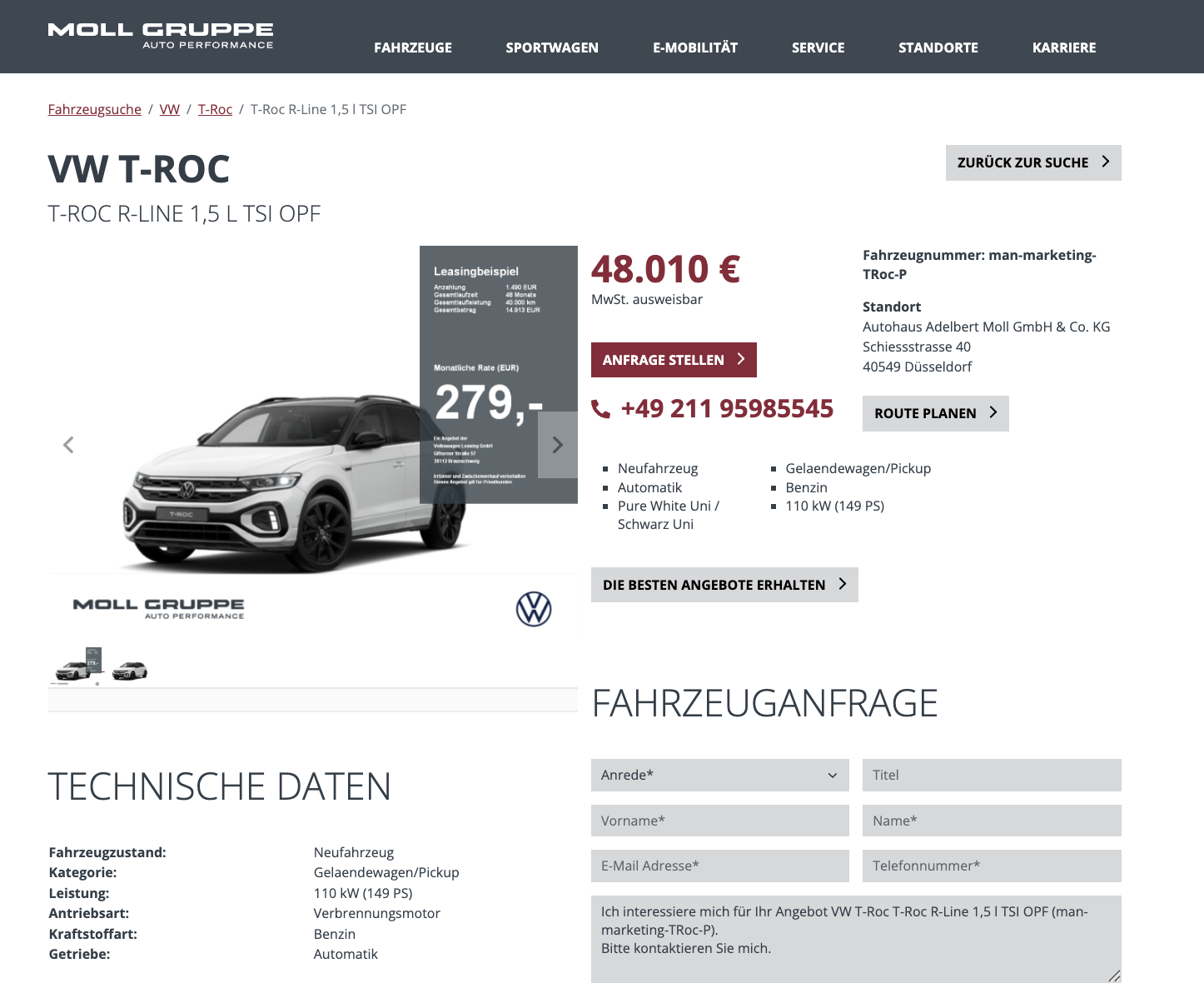 Das Angebot vom Autohaus Moll basiert auf 48 Monaten Laufzeit und 10.000 Kilometern pro Jahr, andere Profile lassen sich in der Regel anpassen. Unterm Strich gibt es hier einen VW T Roc 1.5 TSI DSG R Line Vorfacelift, klar kalkuliert, gut ausgestattet und kurzfristig verfügbar, für alle, die bewusst zum bewährten T-Roc Look greifen wollen, statt sich mit der neuesten Generation anzufreunden.