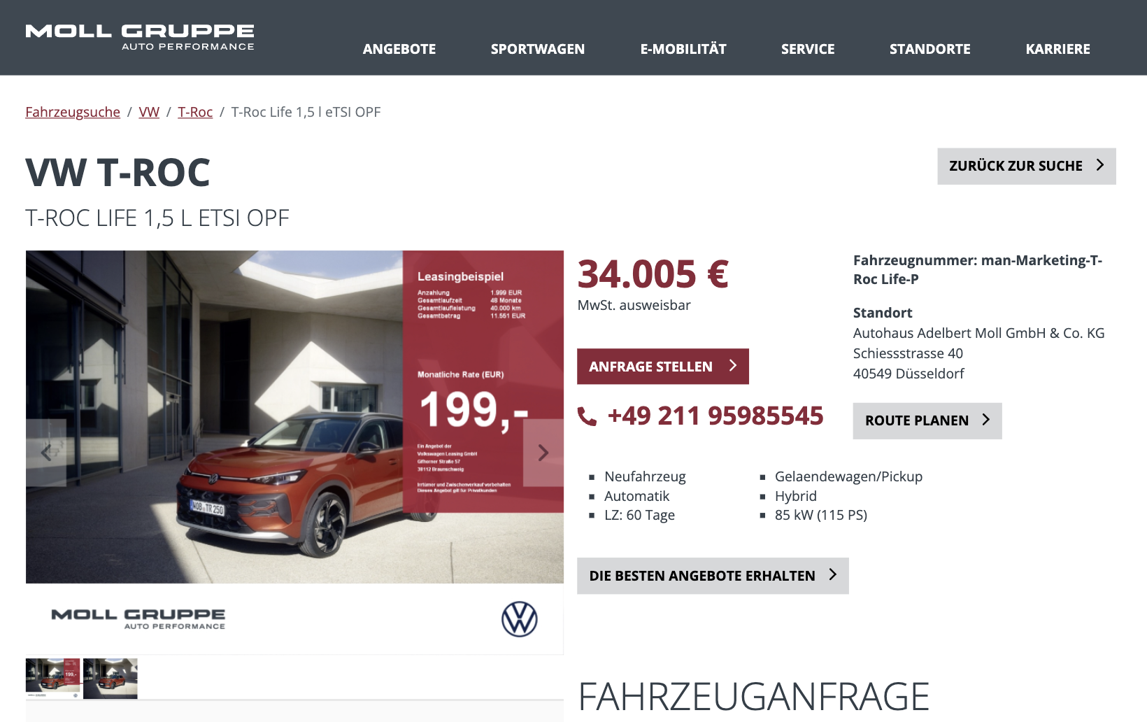 Die Kalkulation basiert auf 48 Monaten Laufzeit und 10.000 Kilometern pro Jahr, Anpassungen sind in vielen Fällen möglich. Besonders interessant wird das Angebot im direkten Vergleich. Während beim Marktführer für einen vergleichbaren VW T-Roc mit gleicher Sonderzahlung rund 289 Euro brutto monatlich verlangt werden, liegt dieses Angebot spürbar darunter.