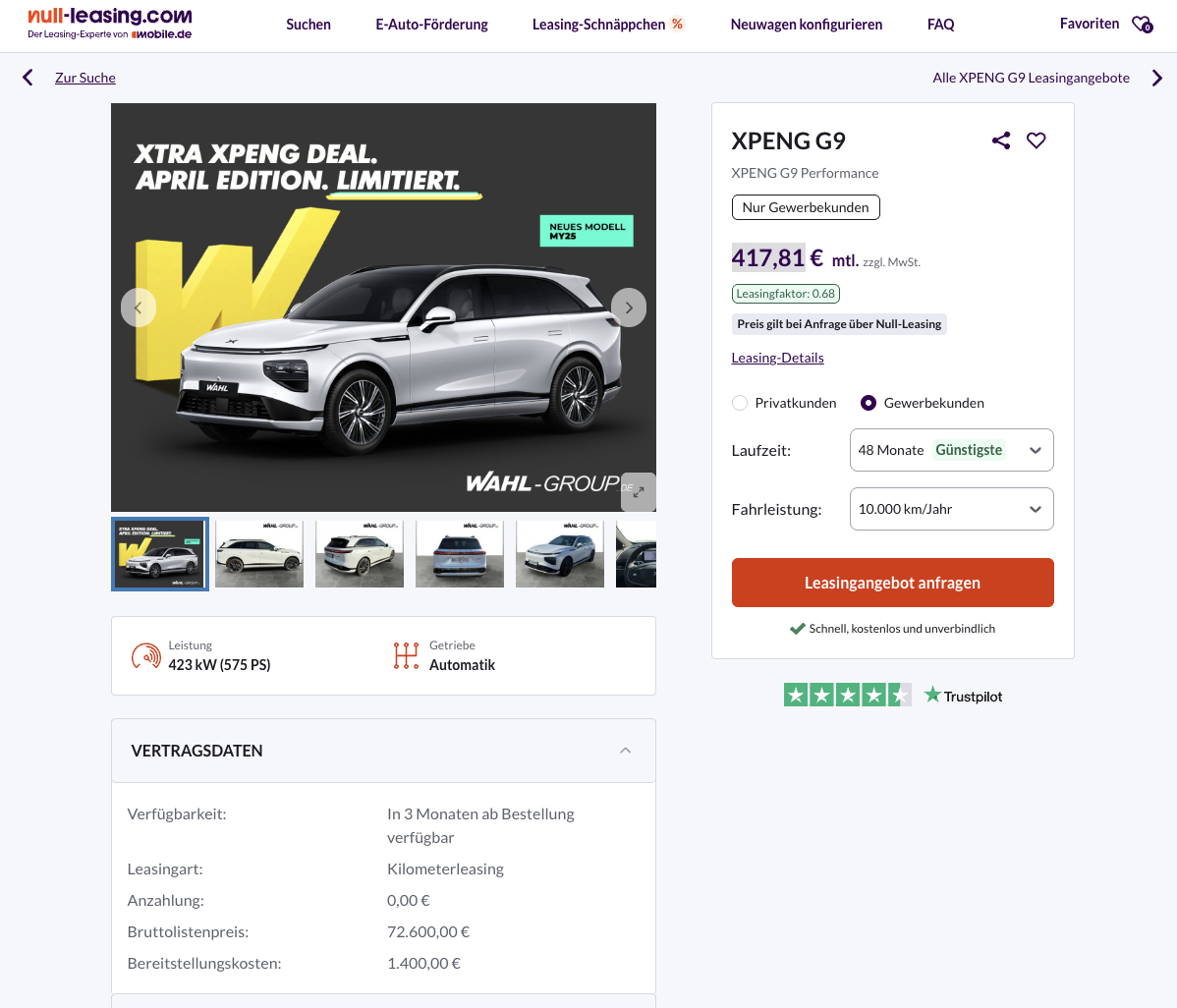 Die Kalkulation basiert auf 48 Monaten Laufzeit und 10.000 Kilometern pro Jahr. Besonders spannend bleibt die Marktsituation. Während viele Plattformen XPENG noch gar nicht im Portfolio führen, ist dieses Angebot bereits verfügbar.
